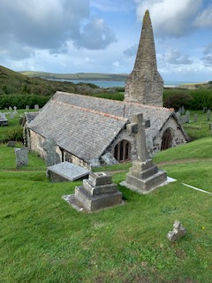 Whilst taking a vacation in Cornwall a few years ago I visited The Church of St. Enodoc. Primarily it was known to me as the burial place of the poet Sir John Betjeman. However the history of the church is intriguing. A church in the middle of a golf course, it just doesn’t get any better, does it? Shifting sand dunes covered the church in the early eighteenth century and in the nineteenth century sand was removed and dunes stabilized. Part of the present building dates back to the thirteenth century. http://www.greatenglishchurches.co.uk/html/st_enodoc.html