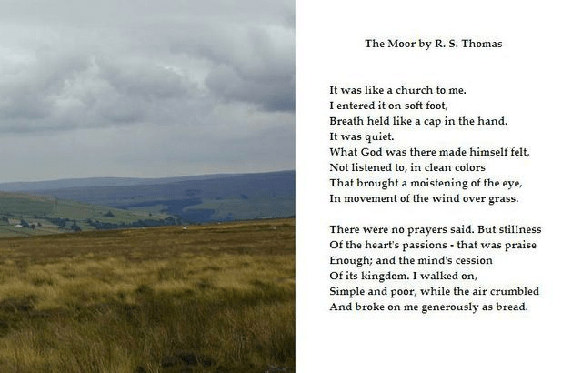 A good many years ago, while visiting the National Cathedral in Washington DC I bought my first R.S. Thomas poetry book from the cathedral gift shop. Today I have many of his poetry collections on my book shelf. These books feel like good friends as I often have good conversation with the words on their pages. His mixture of belief and doubt, darkness and light, and his ongoing search for homeland and hope keeps me engaged. In his poem The Way of It we catch a rare glimpse of the poet’s love and devotion to his wife, as she turns paint into flowers, and always mending the garment of our marriage. Please use the link to discover Elsi Eldridge’s work as an artist. https://meeldridge.com/ In the poem one line of what feels harsh criticism leads to a line of beautiful praise. Please take time to discover his poems – I hold all his words with deep appreciation and delight. https://www.poeticous.com/r-s-thomas